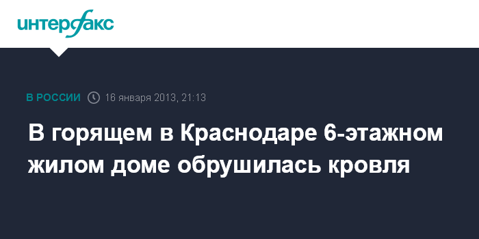 В горящем в Краснодаре 6-этажном жилом доме обрушилась кровля
