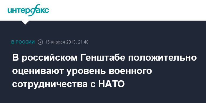 "Итоги совместной работы в 2012 году нами в целом оцениваются положительно. По нашим оценкам, выполнено более 85 процентов мероприятий плана, что является очень хорошим показателем и подтверждает приверженность идее наращивания сотрудничества в областях, представляющих взаимный интерес", - сказал Герасимов по завершении заседания Совета Россия-НАТО на уровне начальников Генеральных штабов, которое состоялось в среду в Брюсселе.