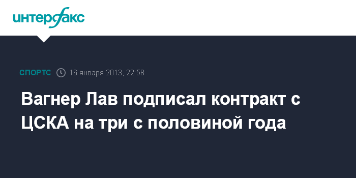 Москва. 16 января. INTERFAX.RU - Бразильский нападающий Вагнер Лав подписал контракт с московским футбольным клубом ЦСКА.