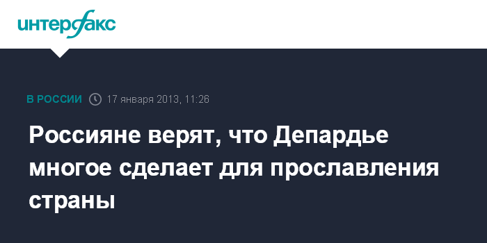 Россияне верят, что Депардье многое сделает для прославления страны