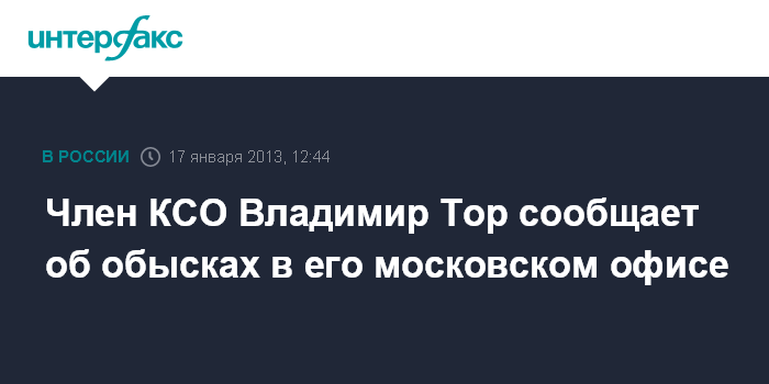 Член КСО Владимир Тор сообщает об обысках в его московском офисе