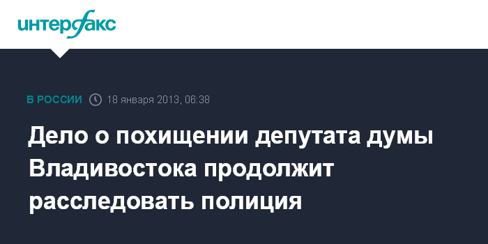 Следственные органы Приморья пришли к выводу, что депутат действительно был похищен неизвестными, и возбудили уголовное дело по ст. 163 УК РФ (вымогательство).