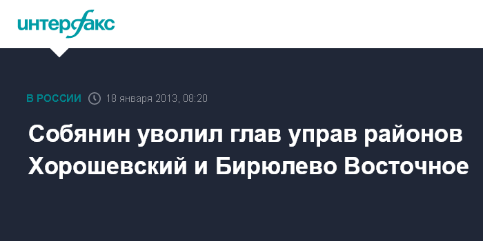 Собянин уволил глав управ районов Хорошевский и Бирюлево Восточное