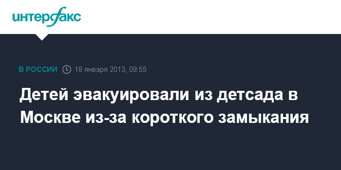 Москва. 18 января. INTERFAX.RU - Детский сад эвакуирован из-за короткого замыкания на юго-востоке Москвы, сообщил "Интерфаксу" источник в правоохранительных органах.