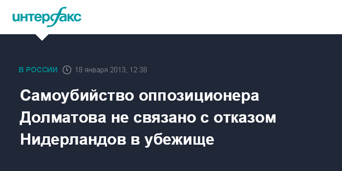 Самоубийство оппозиционера Долматова не связано с отказом Нидерландов в убежище