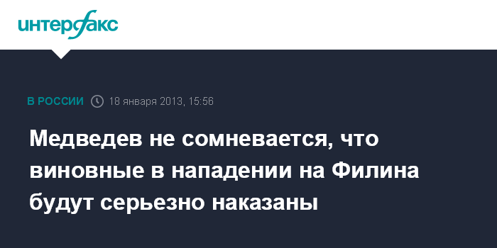 Медведев не сомневается, что виновные в нападении на Филина будут серьезно наказаны