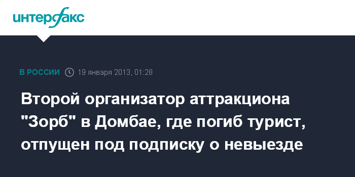 Черкесск. 19 января. ИНТЕРФАКС-ЮГ - В деле об организации опасного аттракциона "Зорб" в Домбае (Карачаево-Черкесия), на котором погиб турист, определены два подозреваемых.