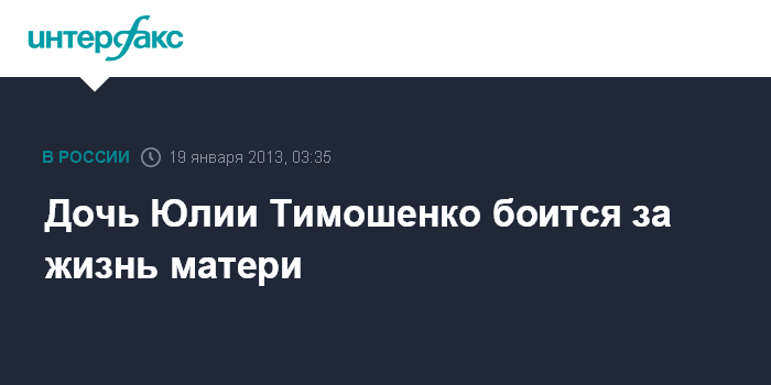 Киев. 19 января. ИНТЕРФАКС-УКРАИНА - Дочь экс-премьера Юлии Тимошенко Евгения боится за жизнь матери и считает, что последние события вокруг нее связаны с боязнью украинской власти решения Европейского суда по правам человека (ЕСПЧ).