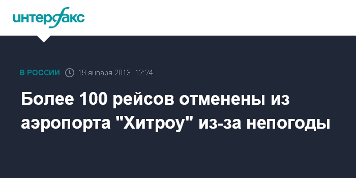 Телеканал отмечает, что взлетно-посадочные полосы аэропорта занесены снегом, а сам аэропорт переполнен. Некоторые пассажиры вынуждены были провести до семи часов в самолетах, ожидающих вылета, так как в терминале не было места для их размещения. Информация на веб-сайте "Хитроу" свидетельствует о том, что один из рейсов из Москвы также был отменен.