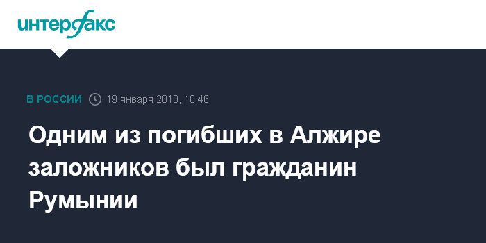 Бухарест. 19 января. INTERFAX.RU - Среди заложников, погибших в ходе спецоперации алжирских войск на газовом объекте BP, был гражданин Румынии, заявил в субботу премьер-министр этой страны Виктор Понта. По его словам, в ходе спецоперации еще один румын получил ранения.