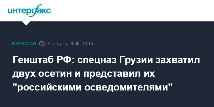 Генштаб РФ: спецназ Грузии захватил двух осетин и представил их "российскими осведомителями"