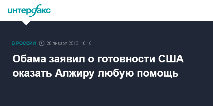 Лондон. 20 января. INTERFAX.RU - США готовы оказать Алжиру любую необходимую помощь, заявил в субботу президент США Барак Обама в связи с проведением алжирскими спецслужбами операции по освобождению заложников, удерживавшихся на газоперерабатывающем заводе.