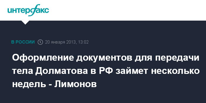Оформление документов для передачи тела Долматова в РФ займет несколько недель - Лимонов