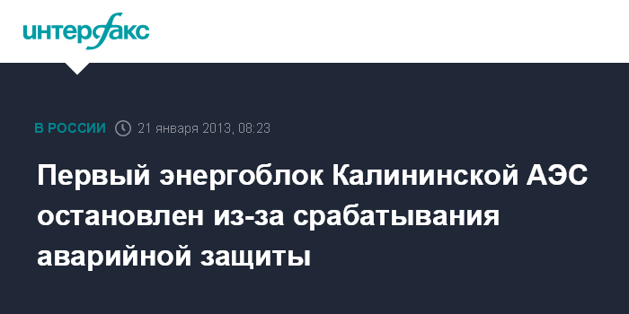 Москва. 21 января. INTERFAX.RU - Неисправность генератора привела к отключению первого энергоблока Калининской атомной электростанции в Тверской области, сообщил "Интерфаксу" источник в правоохранительных органах.