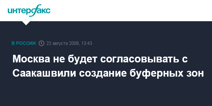 Москва. 22 августа. INTERFAX.RU - Россия не намерена вести консультации с руководством Грузии по поводу размера буферных зон в Абхазии и Южной Осетии.