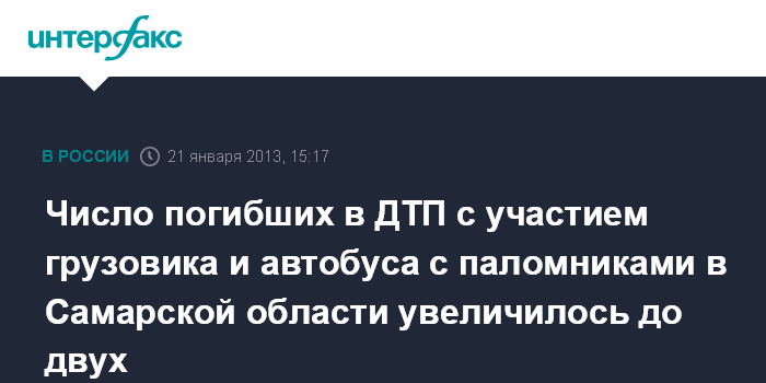 Самара. 21 января. INTERFAX.RU - Министерство здравоохранения Самарской области сообщает о гибели одного из госпитализированных после ДТП с участием автобуса с паломниками в Самарской области.