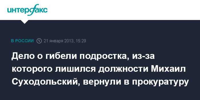 Дело о гибели подростка, из-за которого лишился должности Михаил Суходольский, вернули в прокуратуру