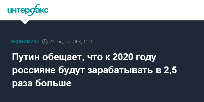 Путин обещает, что к 2020 году россияне будут зарабатывать в 2,5 раза больше
