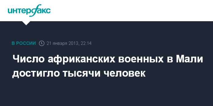 Он также отметил, что в перспективе в Мали должны быть переброшены еще несколько тысяч военнослужащих из африканских стран. Африканские военные призваны оказать поддержку малийским и французским военным в проведении военной операции против исламистских боевиков в Мали.