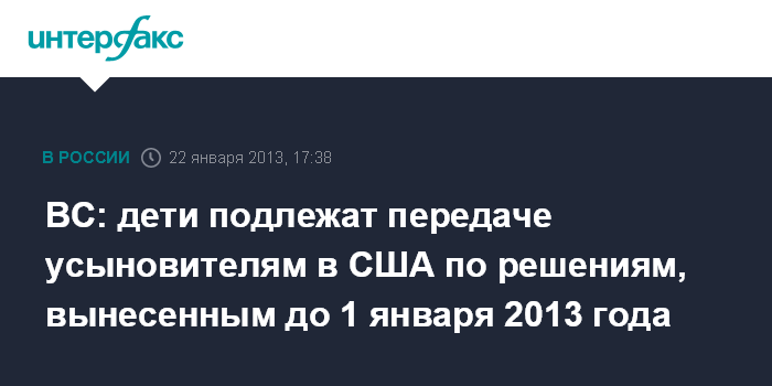 ВС: дети подлежат передаче усыновителям в США по решениям, вынесенным до 1 января 2013 года