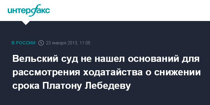 Вельский суд не нашел оснований для рассмотрения ходатайства о снижении срока Платону Лебедеву