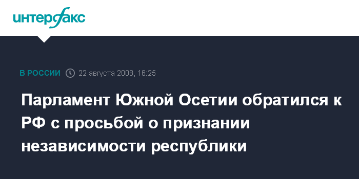 Парламент Южной Осетии обратился к РФ с просьбой о признании независимости республики