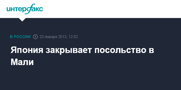 Токио. 23 января. INTERFAX.RU - Токио временно закрывает посольство в столице Мали Бамако из-за ухудшения ситуации с безопасностью, заявил в среду представитель японского МИД.