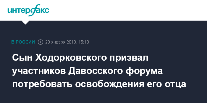 Москва. 23 января. INTERFAX.RU - Павел Ходорковский, сын экс-главы ЮКОСа Михаила Ходорковского, обратился к участникам Всемирного экономического форума в Давосе с просьбой поднять вопрос об освобождении из заключения его отца.