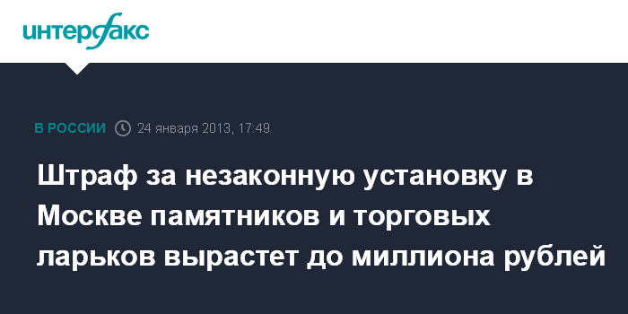 Штраф за незаконную установку в Москве памятников и торговых ларьков вырастет до миллиона рублей