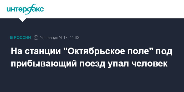 По его данным, инцидент произошел в пятницу утром на станции "Октябрьское поле", где под прибывающий поезд упал человек. Для его извлечения на платформу снято напряжение с контактного рельса, движение поездов на Таганско-Краснопресненской линии в сторону центра временно приостановлено.