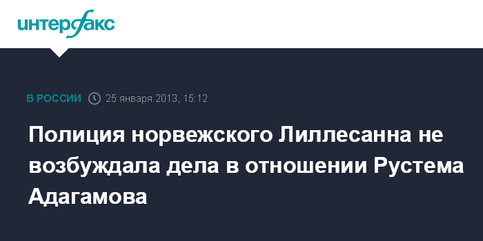 Москва. 25 января. INTERFAX.RU - Полиция норвежского города Лиллесанн не возбуждала уголовного дела о педофилии в отношении известного российского блогера и члена Координационного совета оппозиции Рустема Адагамова. Об этом говорится в письме, поступившем в пятницу в "Интерфакс" от шефа полиции города Лиллесанн Кьетил Нигард.