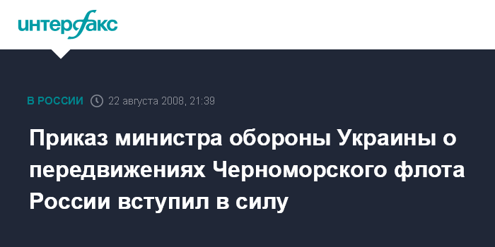 Соответствующий приказ издан во исполнение указа президента "О решении Совета национальной безопасности и обороны Украины от 13 августа 2008 года "О ситуации вокруг передвижений, связанных с деятельностью военных формирований Черноморского флота Российской Федерации вне мест их дислокации на территории Украины".