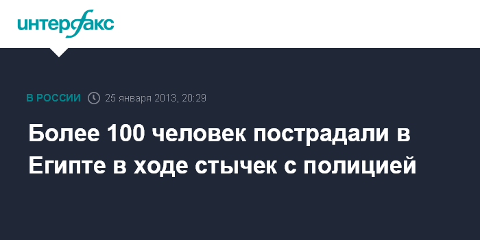 Каир. 25 января. INTERFAX.RU - По меньшей мере 110 человек получили ранения во время столкновений демонстрантов с полицейскими в Египте, сообщают в пятницу местные власти.