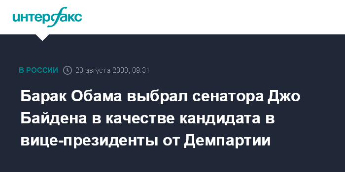 Барак Обама выбрал сенатора Джо Байдена в качестве кандидата в вице-президенты от Демпартии