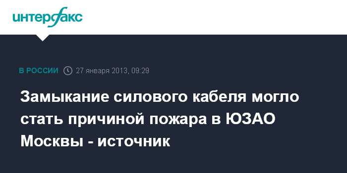 Замыкание силового кабеля могло стать причиной пожара в ЮЗАО Москвы - источник