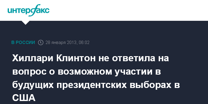 Ранее в американских СМИ появились сообщения о том, что Х.Клинтон, которая ранее объявила о своей отставке после назначения нового госсекретаря США, может принять участие в следующей президентской гонке.