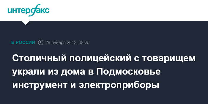 Москва. 28 января. INTERFAX.RU - Сотрудник столичной вневедомственной охраны и его подельник задержаны после совершения кражи из дачного дома в Подмосковье, сообщили "Интерфаксу" в пресс-службе ГУ МВД России по Москве.