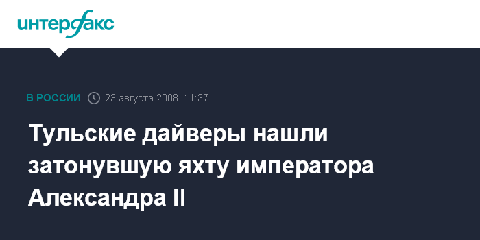Тула. 23 августа. INTERFAX.RU - Аквалангисты Тульского подводного клуба "Нептун" и местного поискового центра "Искатель" обнаружили в Черном море яхту, принадлежавшую российскому императору Александру II и его семье, сообщил "Интерфаксу" глава "Искателя" Олег Золотарев.