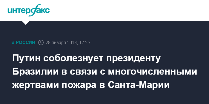 Путин соболезнует президенту Бразилии в связи с многочисленными жертвами пожара в Санта-Марии