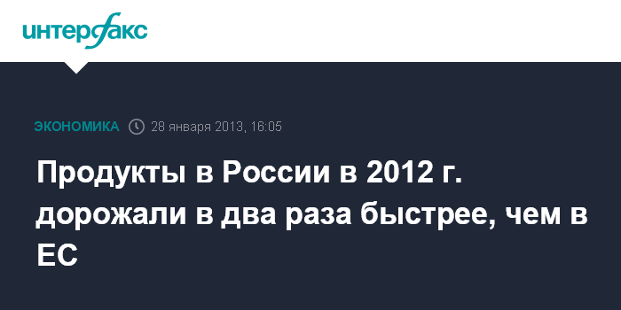 Продукты в России в 2012 г. дорожали в два раза быстрее, чем в ЕС