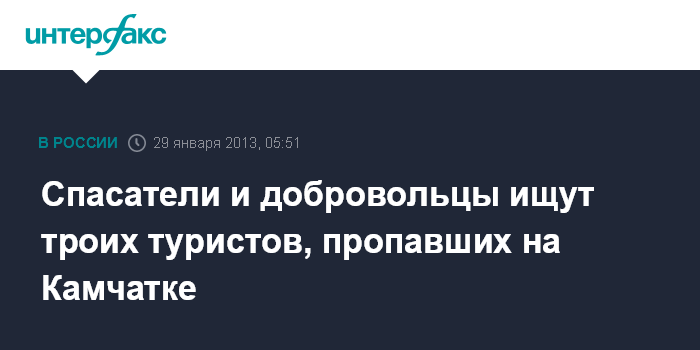 "Информация о том, что люди пропали, поступила спасателям во вторник от жителя Петропавловска-Камчатского. Он рассказал, что 26 января трое его знакомых на снегоходах отправились предположительно в природный парк "Вулканы Камчатки" в район Авачинского перевала. Они должны были вернуться утром во вторник, но в назначенное время не объявились", - сообщил агентству "Интерфакс-Дальний Восток" представитель ГУ МЧС по Камчатскому краю.