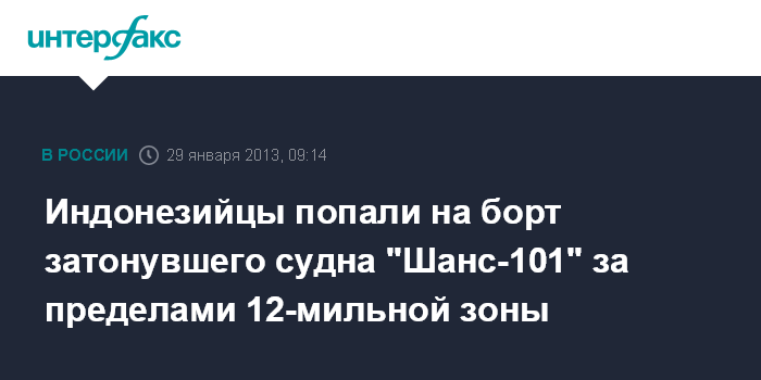 Индонезийцы попали на борт затонувшего судна "Шанс-101" за пределами 12-мильной зоны