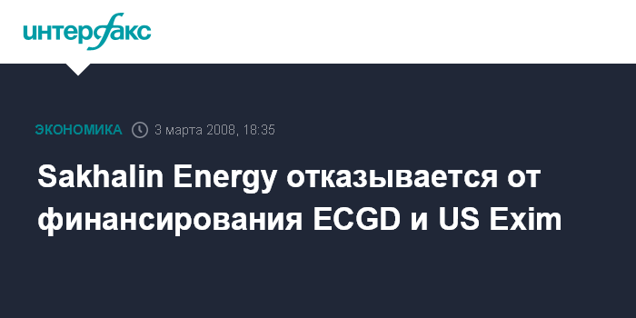 Sakhalin Energy отказывается от финансирования ECGD и US Exim