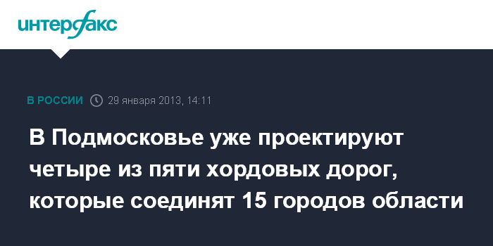 По его словам, уже началось проектирование 4 хордовых дорог из 5, которые соединят между собой 15 городов Подмосковья. Кроме того, запланировано строительство 16 путепроводов.