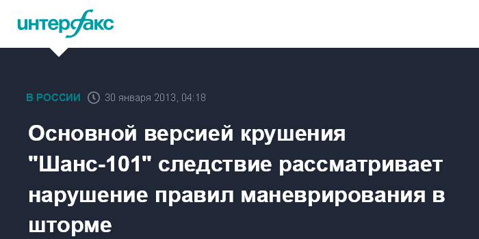 Основной версией крушения "Шанс-101" следствие рассматривает нарушение правил маневрирования в шторме