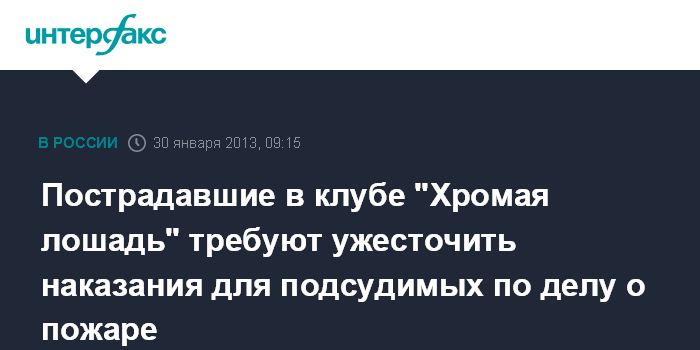 Пермь. 30 января. INTERFAX.RU - Пострадавшие и родственники погибших во время пожара в клубе "Хромая лошадь" обратились к Ленинскому районному суду Перми с коллективной просьбой.