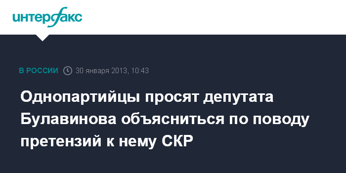 Однопартийцы просят депутата Булавинова объясниться по поводу претензий к нему СКР