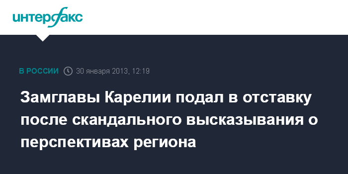 Замглавы Карелии подал в отставку после скандального высказывания о перспективах региона