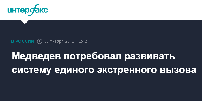 Москва. 30 января. INTERFAX.RU - В России необходимо оперативно внедрить систему единого экстренного вызова 112, считает премьер-министр РФ Дмитрий Медведев.