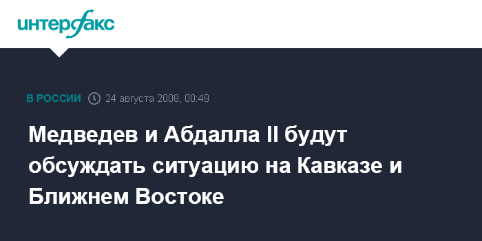 Медведев и Абдалла II будут обсуждать ситуацию на Кавказе и Ближнем Востоке